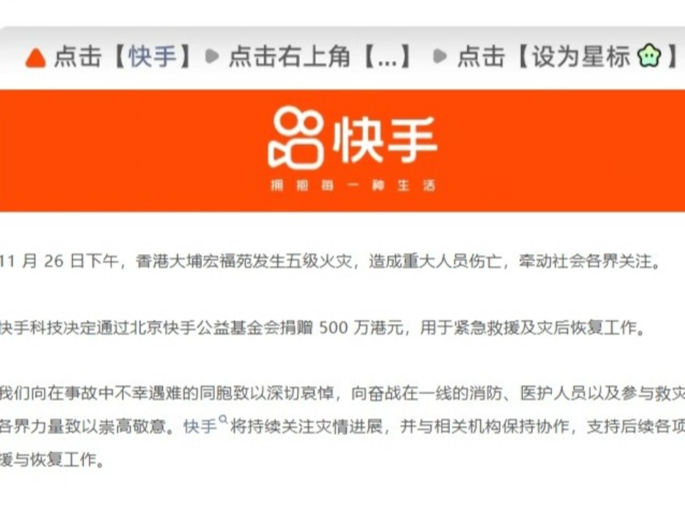 深切哀悼火灾遇难者 致敬救援英雄 快手携手共助灾后重建