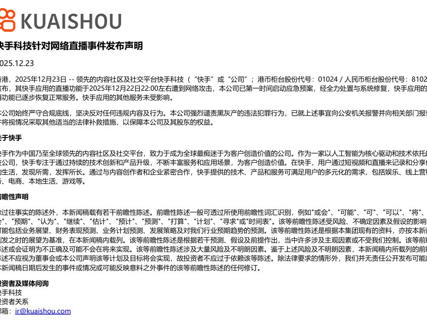 快手遭有组织恶意攻击 大量违规直播突现平台