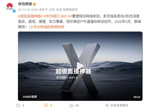 华为路由X3 Pro开启预约:Wi-Fi 7+星闪网关+桌面艺术设计