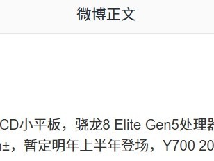 联想拯救者Y700新款平板曝光:8.8英寸3K高刷屏,搭载骁龙8 Elite Gen5