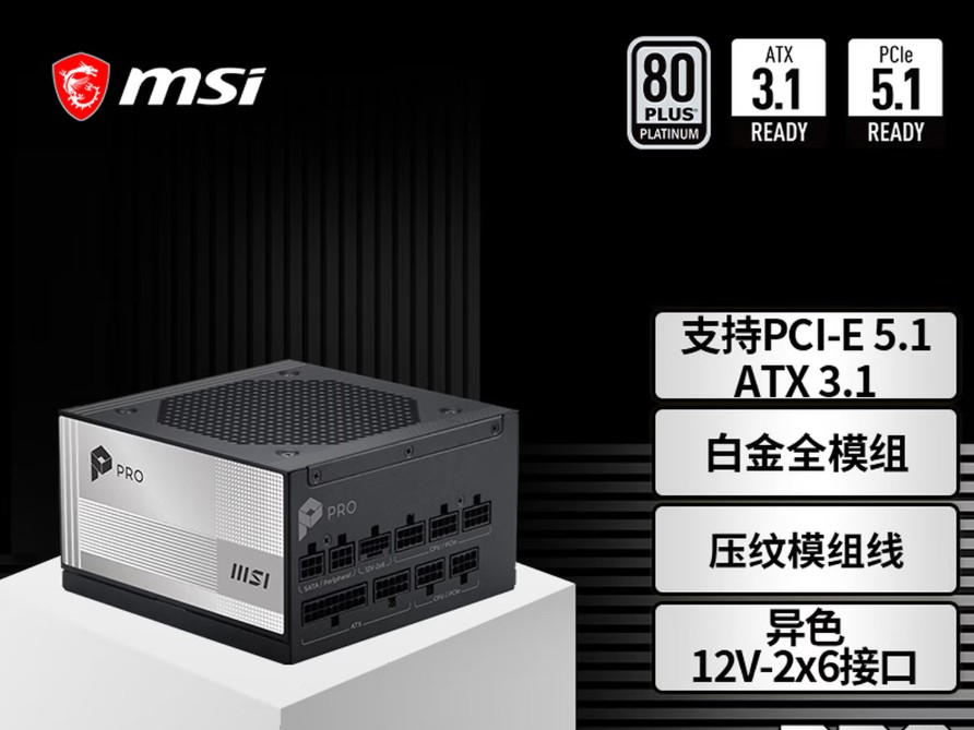 微星PRO A1000PL PCIE5电源上市:ATX3.1+PCIe5.1双认证,首发699元