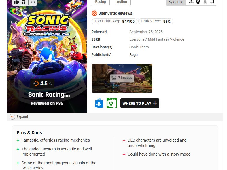 索尼克赛车:交叉世界媒体高分亮相,跨界联动引爆竞速新纪元
