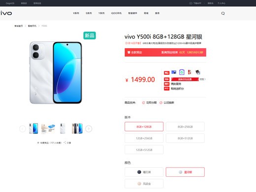 vivo Y500i预售开启:7200mAh电池+120Hz屏,1499元起