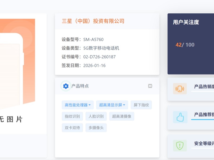 三星新机SM-A5760工信部亮相:轻薄设计配Exynos 1680与45W快充