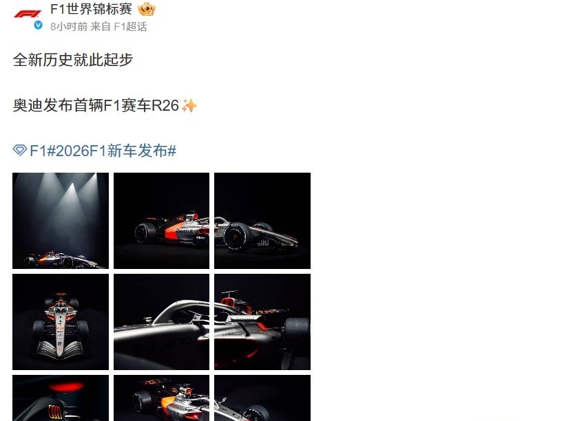 奥迪发布首款F1赛车R26,2026年征战赛场