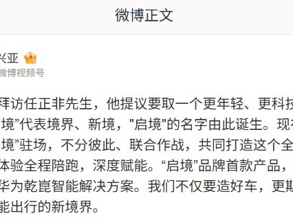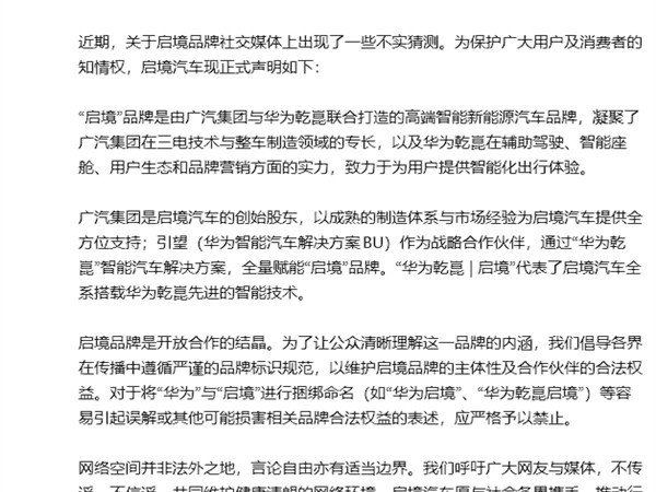 启境汽车澄清不实传闻:与华为乾崑合作但非华为启境