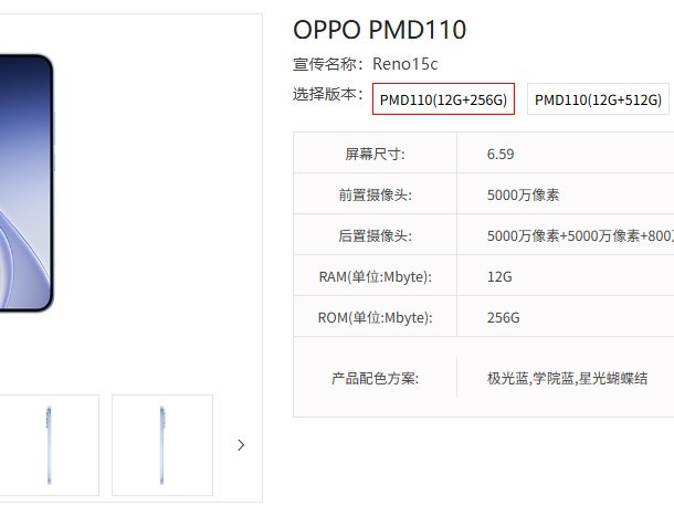 OPPO Reno 15c亮相电信产品库,12月下旬将发