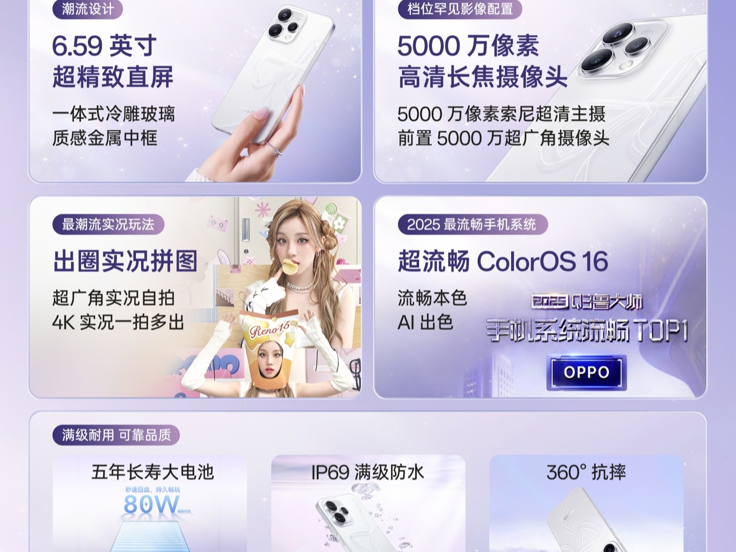 OPPO Reno15c发布:三摄+6.59英寸1.5K屏,搭载骁龙7支持80W快充